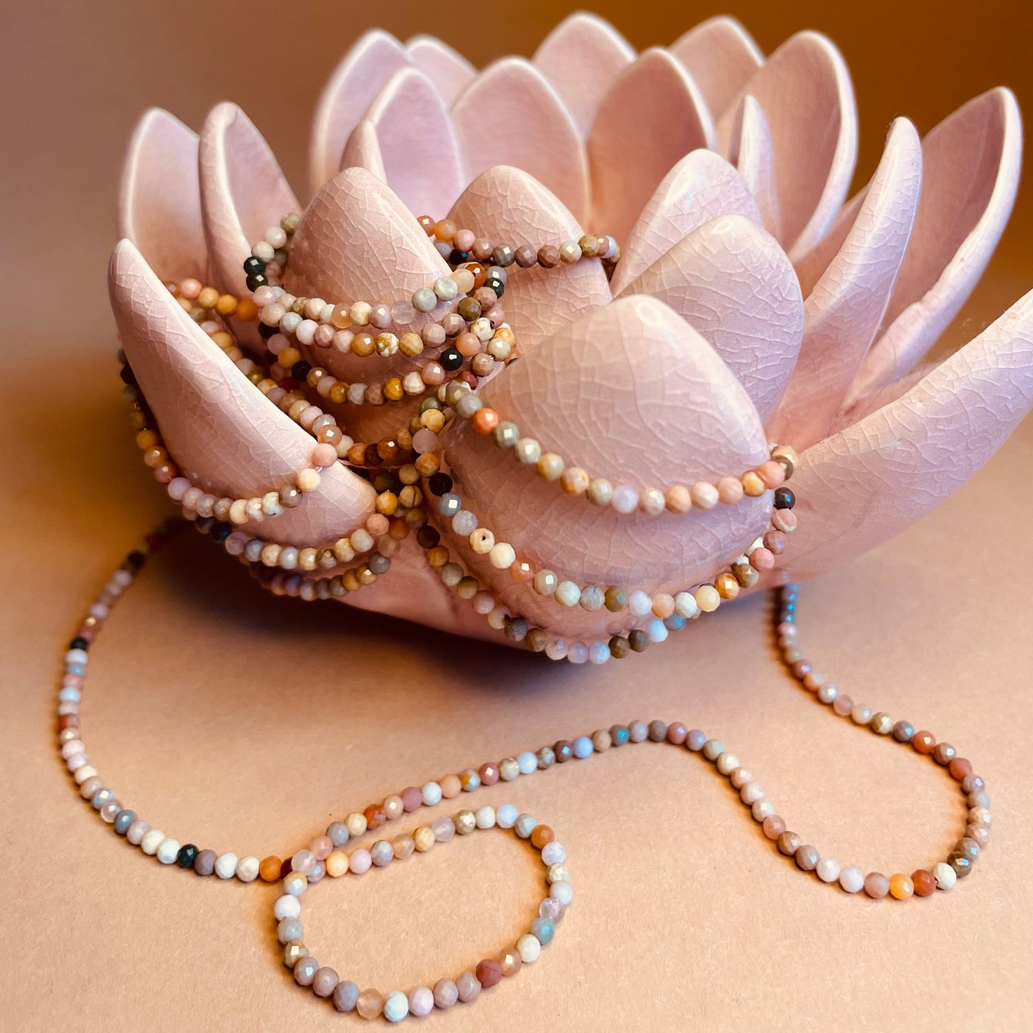 A napkő neve nem véletlen: belső csillogását apró hematit- vagy goethitzárványok okozzák, amelyek fénypontként villannak fel a felszínen - ezt a jelenséget nevezik aventurescenciának. A hordócsiszolt változatok különösen szépen kiemelik ezt a fényjátékot, meleg, földes tónusokat kölcsönözve az ékszereknek. Az apróbb, finoman fazettált napkövek játékos ragyogással teszik gazdagabbá az összhatást. A napkő egyszerre energikus és elegáns - valódi napsugár az ékszerek között.
