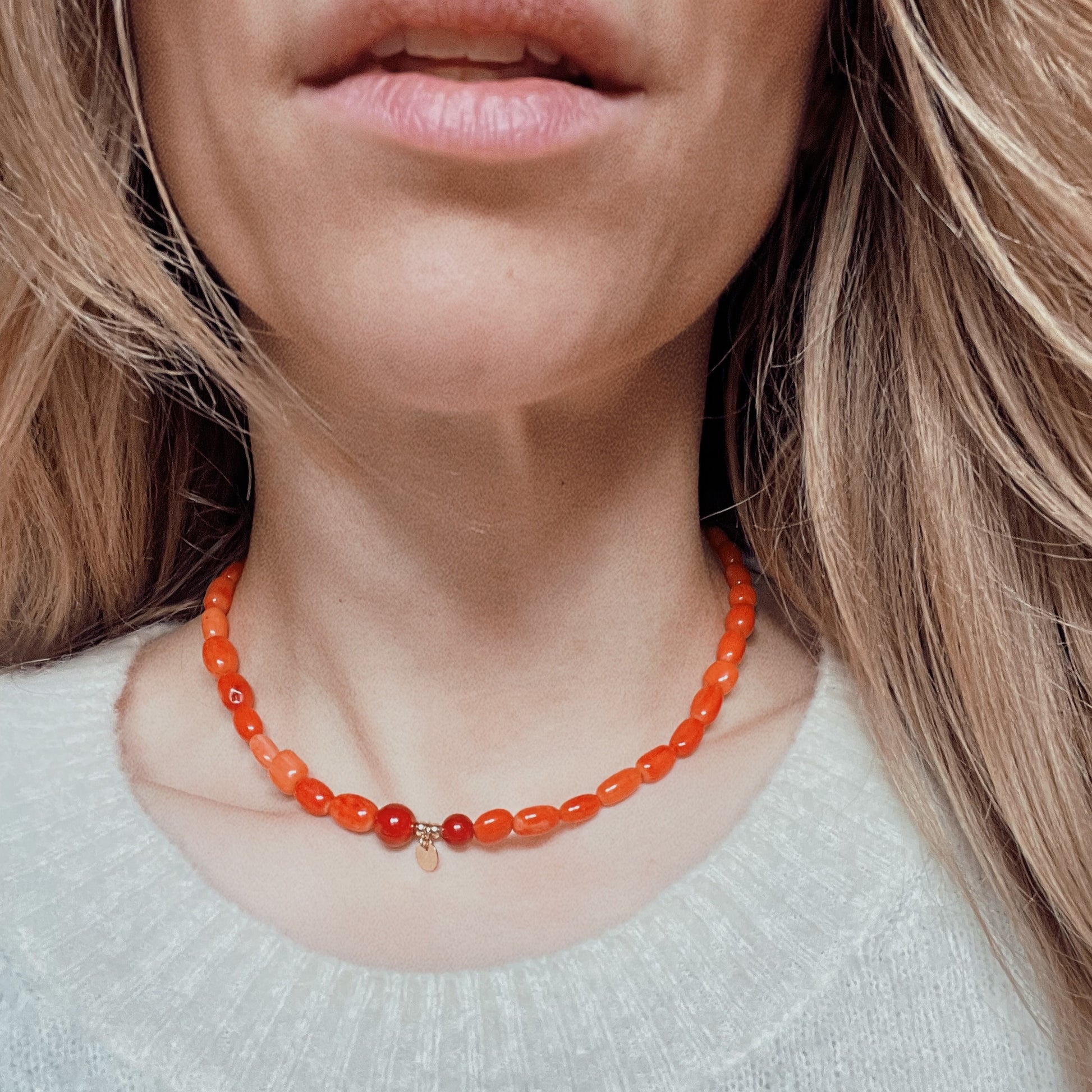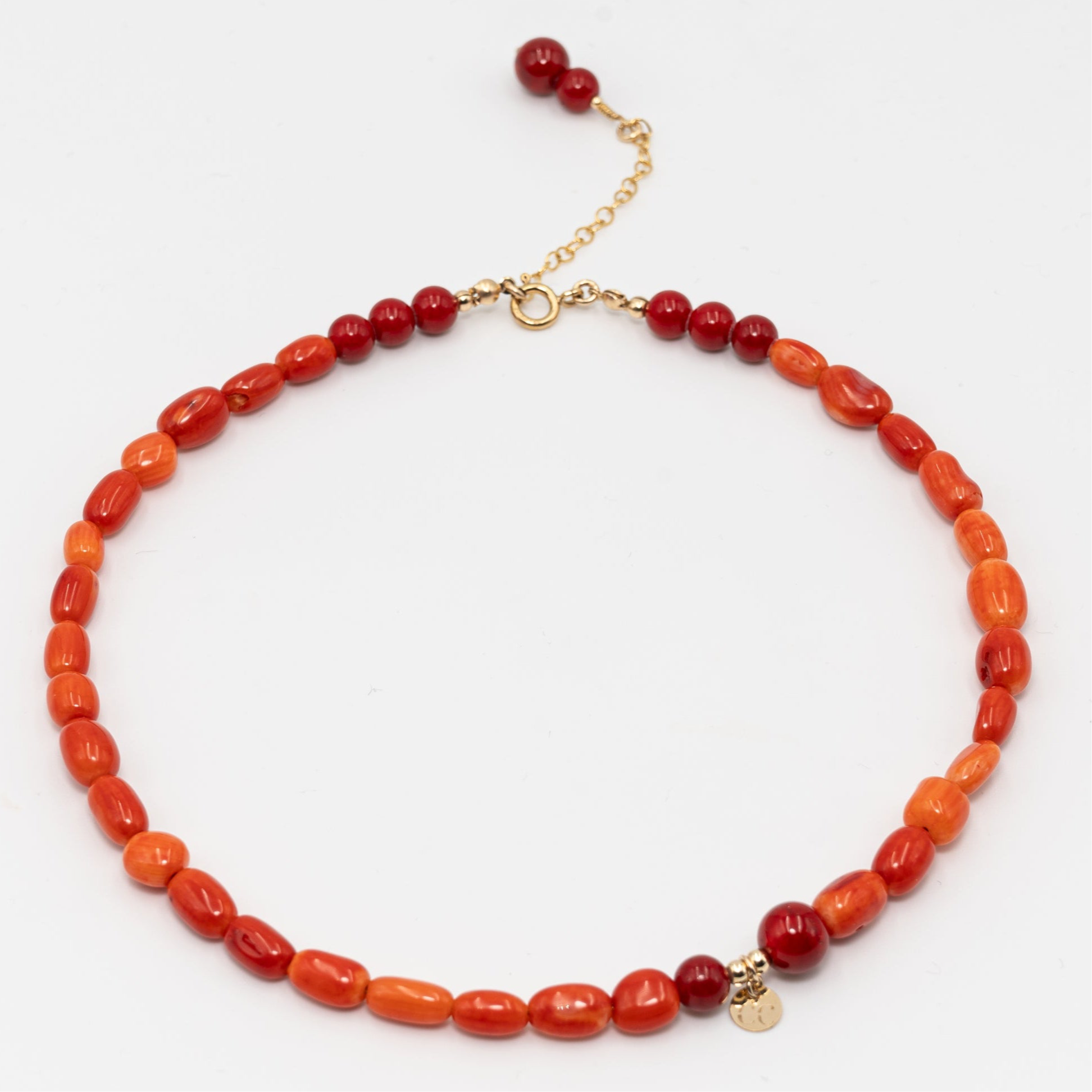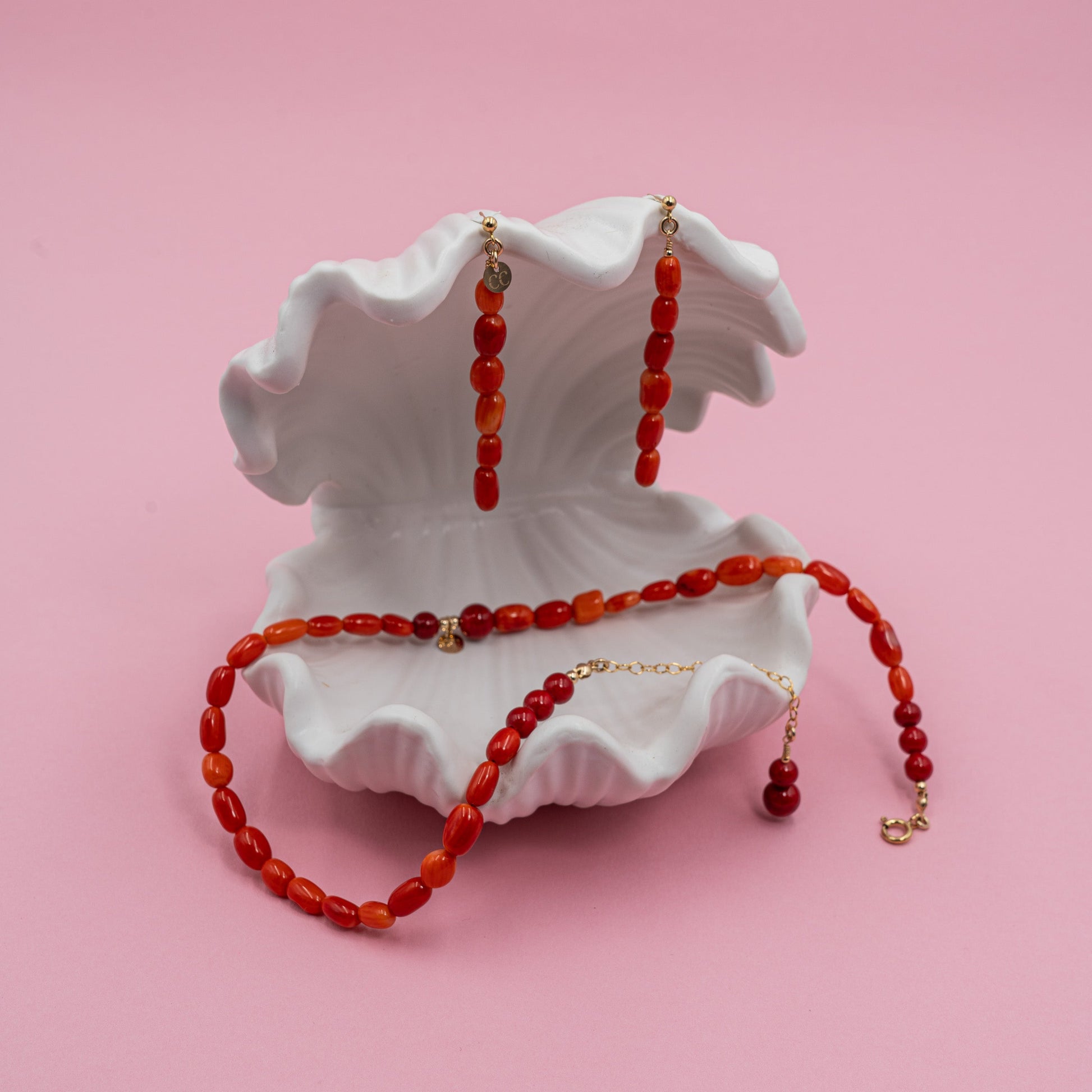 A vibráló korallgyöngyök lüktető színei és a 14 karátos aranyréteggel futtatott szerelékek finom ragyogása együtt hozzák el a napfény derűjét, bárhol is viseled.
