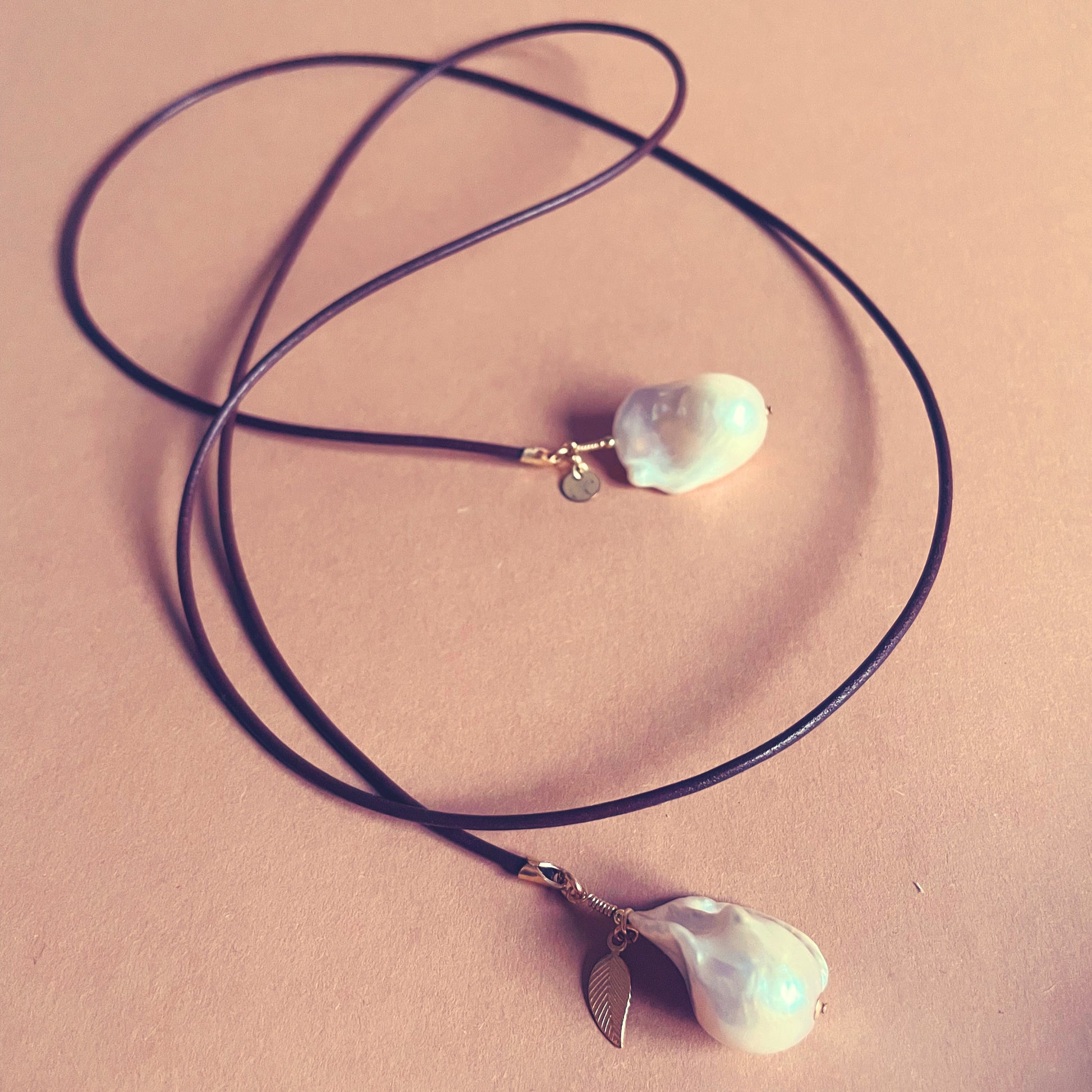 14 Karátos Arany Töltetű Szerelékek, Tenyésztett Édesvízi Barokk Gyöngy és Magas Minőségű Görög Bőrszál