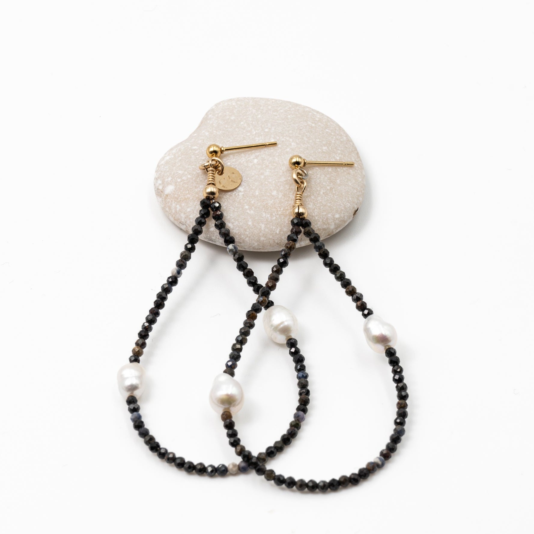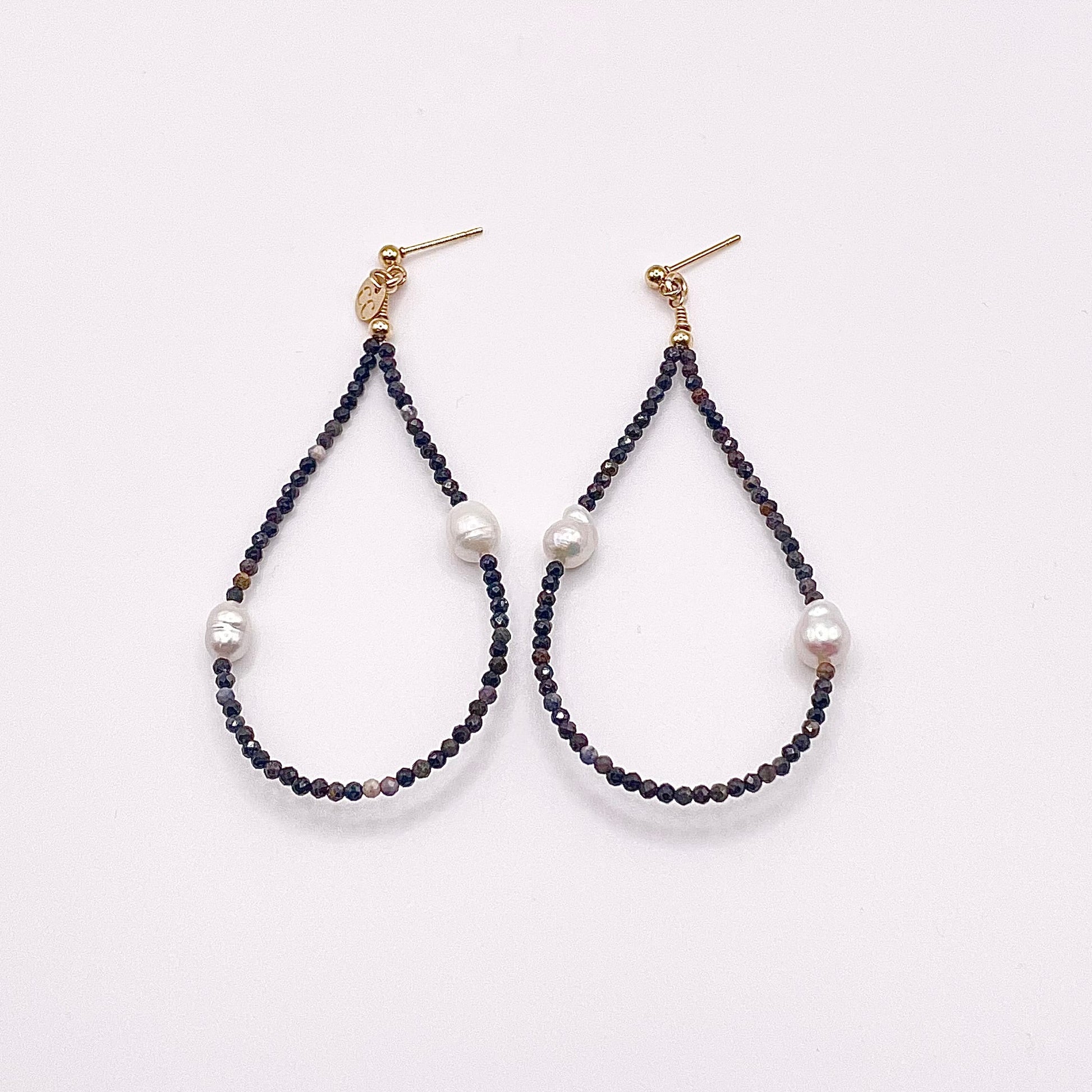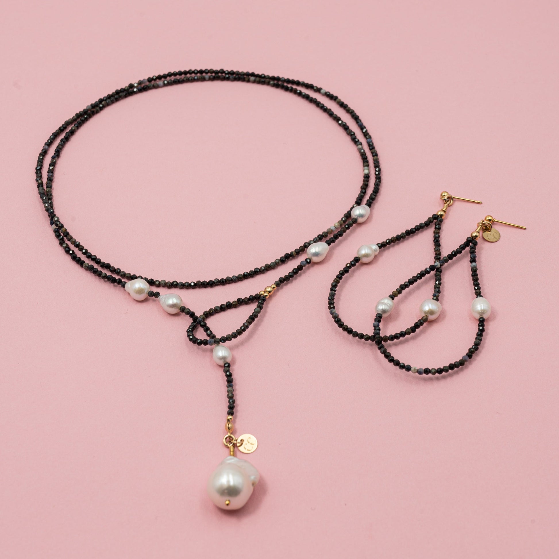 Éjkirálynő fülbevalónk a hozzá illő nyakék kistestvére, amely ugyanazt a misztikus, elbűvölő éjszakai világot idézi meg sziporkázó zafírjaival és édesvízi gyöngyeivel.